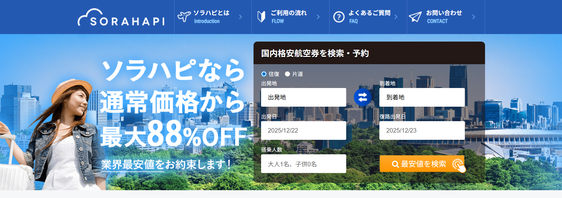 ソラハピ|格安航空券を比較・検索・予約できる便利な航空券サービス