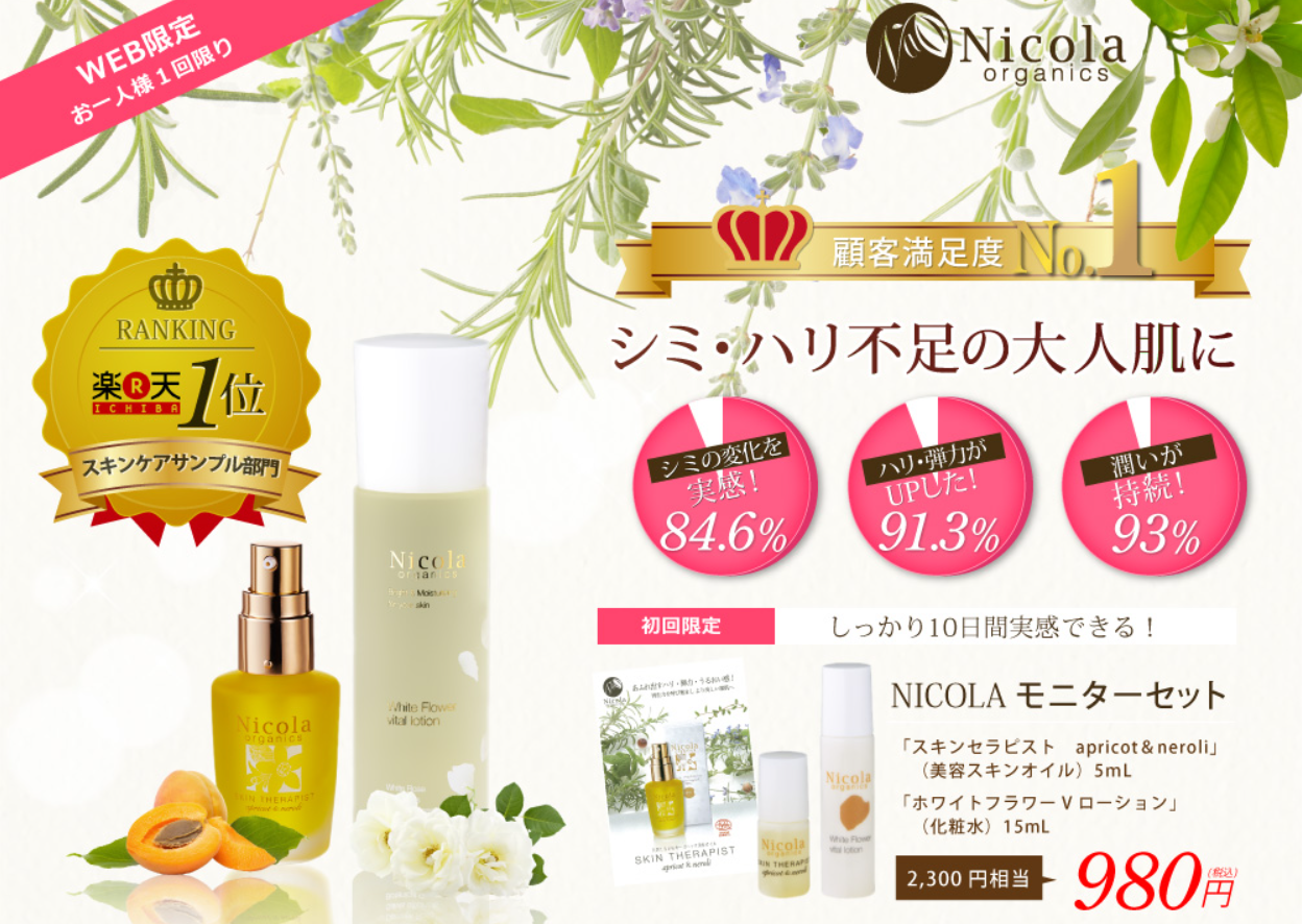 国産オーガニックスキンケア【NICOLA organics】10日間お試しモニターセット