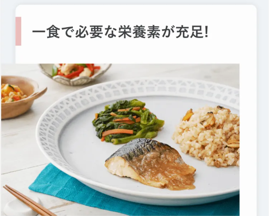 たんぱく質・野菜・ミネラルなどをバランスよく摂れるよう設計されています。