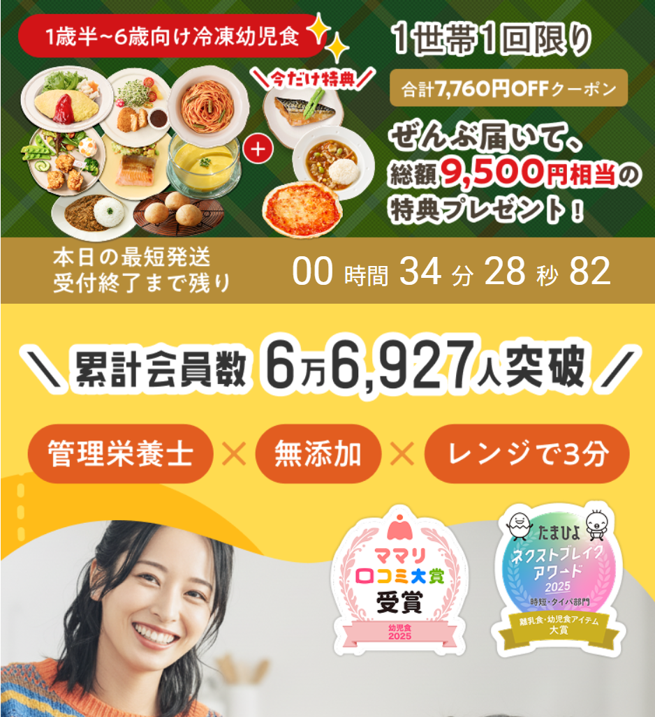 モグモの最大の特長は、幼児期に適した栄養バランスと味付け。