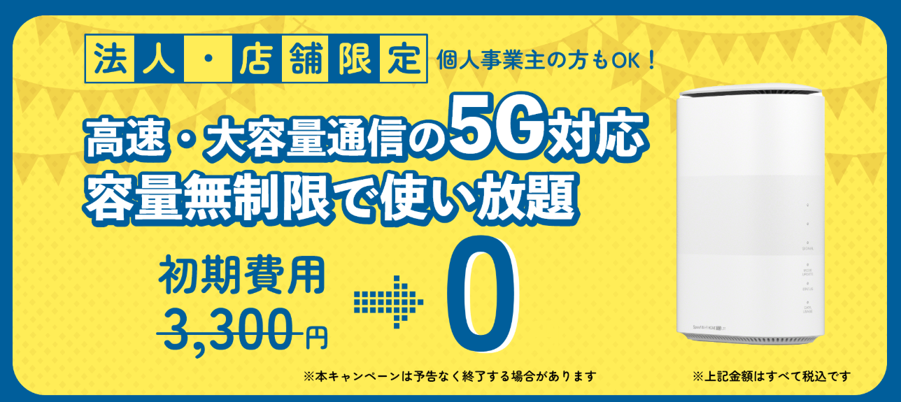 「工事不要」「コンセントに差すだけ」「法人・店舗向けの安定通信」