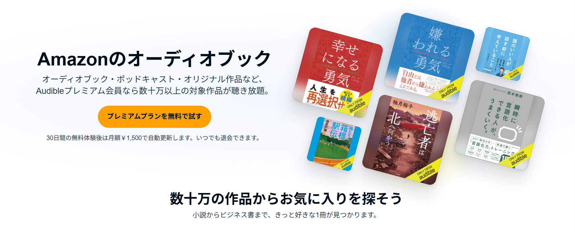 Audibleのプレミアムプランは、月額1,500円(税込)で