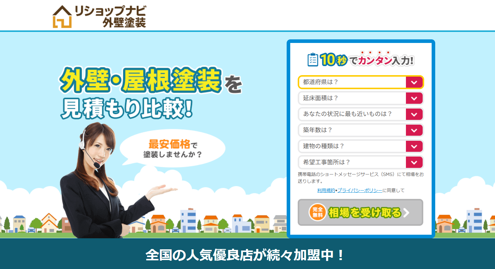 そんな方におすすめなのが、国内最大級の外壁塗装一括見積もりサイト【リショップナビ外壁塗装】です。