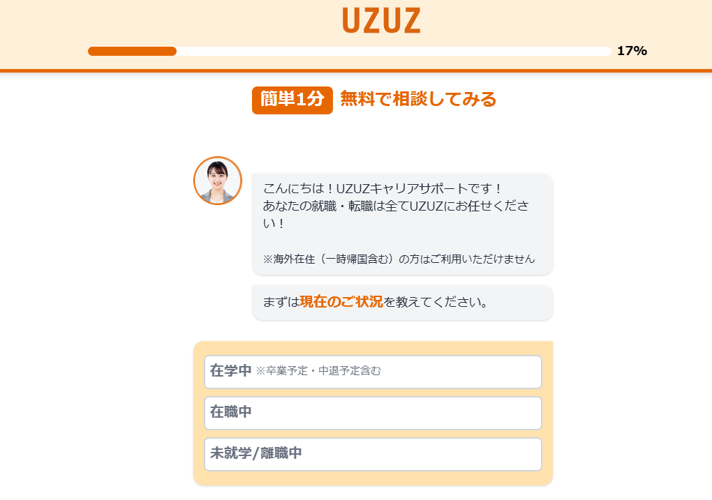 UZUZは、最初から「経歴に自信がない20代」を対象にした就職支援サービス。