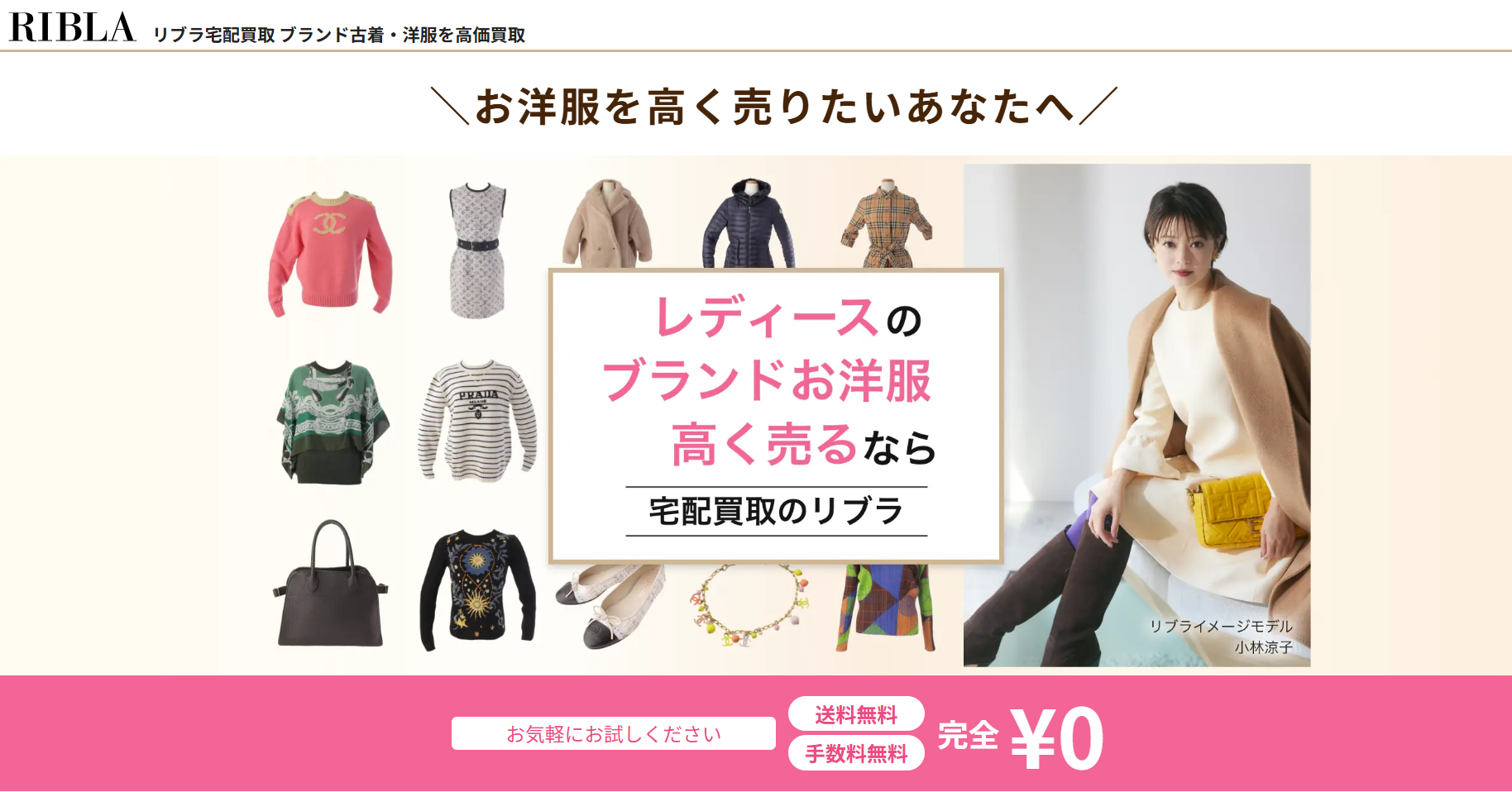 クローゼットに眠っているレディースブランドの洋服やバッグ、シューズを、できるだけ高く・できるだけ簡単に手放したい。そんな方に選ばれているのが、レディースブランド古着専門の宅配買取サービス「RIBLA(リブラ)」です。