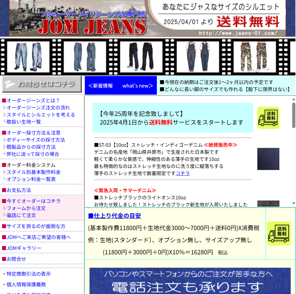 既製品のジーンズを試着して「ウエストは合うのに丈が足りない」「脚のラインがしっくりこない」と感じたことはありませんか?そんな悩みを持つ方に注目されているのが、オーダーメイドジーンズ専門店「JOM JEANS」です。